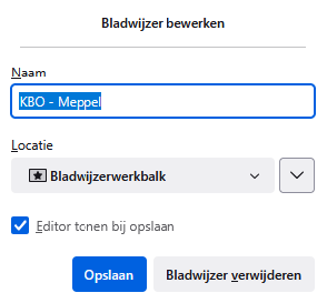 Klik op “Voltooien“, “Gereed” of “Klaar” en de website wordt in de werkbalk toegevoegd.